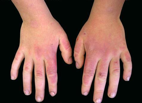 مواد شیمیایی که اغلب باعث واکنش می شوند شامل salicylanilide و hexachloophene می باشند. که Salicylanilide در پاک کننده های صنعتی یافت می شوند. و Hexachlorophene در برخی صابون ها و پاک کننده های ضد باکتری وجود دارند.