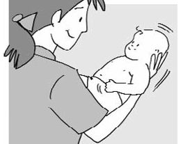 جهاندن و جنباندن . زمانی که کودک توانست سرش را کنترل کند او را از دور کمر نگه دارید اگر کنترل سر هنوز ضعیف است همچنان به شکل قبل کودک را نگه داشته و از سر و گردن او حمایت کنید.