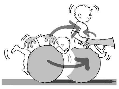 کودک نوپای تان را دمر روی یک توپ درمانی ۶۵ سانتی متری قراردهید او رابه جلو و طرفین بغلتانید سپس در حالت نشسته روی توپ همین تمرین را انجام دهید.