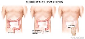 اگر سرطان شما به شیمیدرمانی و پرتودرمانی واکنش نشان نداده است، یا اگر سرطان شما پیشرفته باشد، پزشک ممکن است یک عمل جراحی گستردهتر به نام (abdominoperineal resection) که با نام رزکسیون AP شناخته میشود را انجام بدهد. در طی این روش جراح کانال مقعد، رکتوم و بخشی از روده را حذف میشوند. جراح سپس قسمتهای باقی مانده کولون خود را به شکم باز میکند.